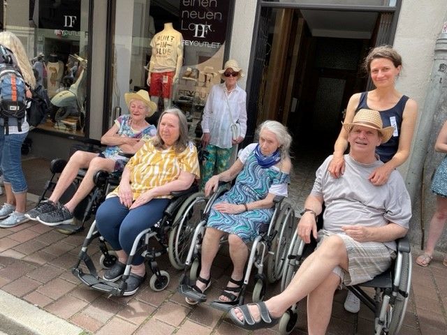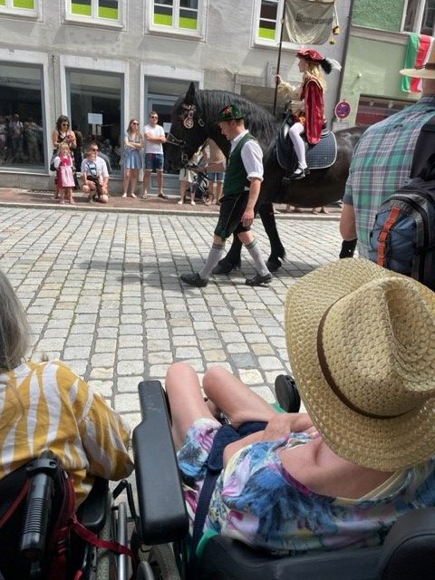 Mit großem Staunen und viel Freude beim Anblick der kostümierten Kinder in ihren historischen Gewändern besuchten einige Bewohner*innen der Geronto mit Betreuungskräften den Umzug des Ruethenfestes. Große Pferde gaben Anlass zur aufgeregten Freudesrufen. Erinnerungen an die Kindheit kamen hoch und selbst die Hitze ward schnell vergessen.